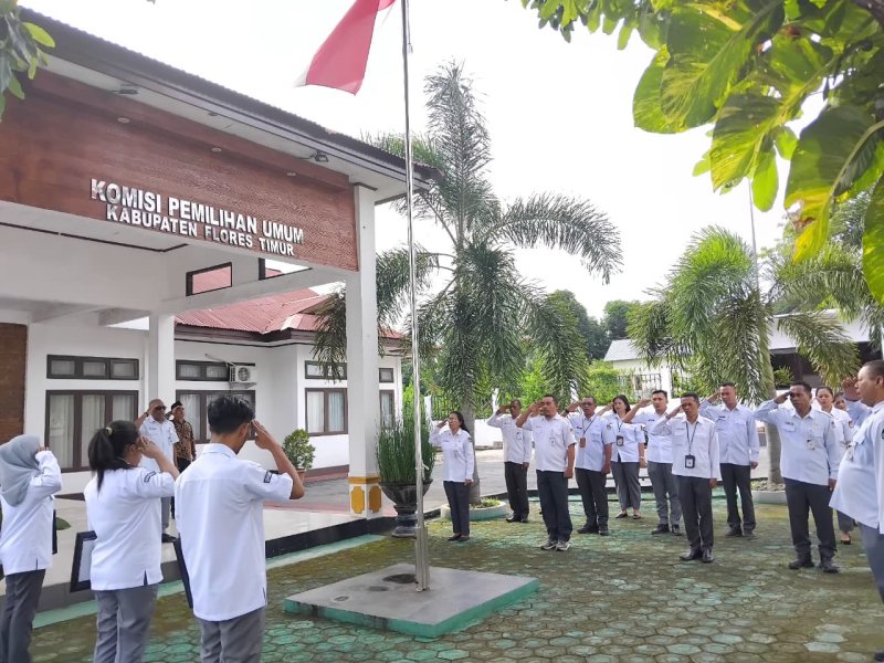 Senin, 26 Januari 2026 Upacara bendera di minggu terakhir bulan Januari 2026 dilaksanakan di halaman kantor Komisi Pemilihan Umum Kabupaten Flores Timur tepat pukul 08.00 wita. Sebagai Pembina Upacara Sekerataris KPU Kabupaten Flores Timur, Jermia Elia David Luase yang didampingi oleh Kadiv Teknis Penyelenggaraan, Arifin Atanggae; Kadiv Sosdiklihparmas dan SDM, Herman Jopi Latol dan Kadiv Hukum dan Pengawasan, Dahlya Reda Ola. Dalam arahannya, Jermia menyampaikan agar seluruh jajaran sekeratriat KPU Kabupaten Flores Timur baik kasubbag maupun staf tetap memperhatikan kedisiplinan yang selama ini telah dijalankan terutama waktu masuk dan keluar kantor serta segera menyelesaikan pekerjaan yang ada dengan selalu berkoordinasi dengan pimpinan. ....