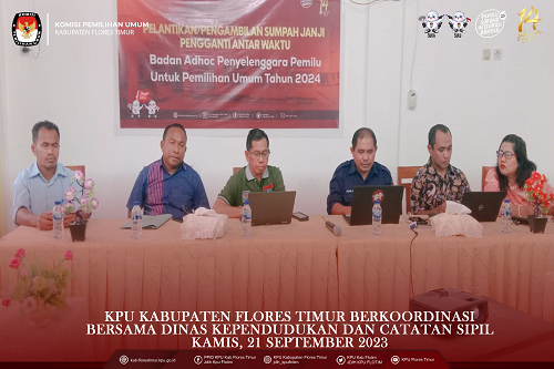 KPU Kab. Flores Timur Larantuka - Komisi Pemilihan Umum (KPU) Kabupaten Flores Timur menerima kunjungan kerja Kepala Dinas Kependudukan dan Pencatatan Sipil (Dukcapil) Kabupaten Flores Timur, Yoseph Aryo Sucipto Pehan Keraf, SE. M. Si pada Selasa,19 September 2023. Kedatangan Kadis Dukcapil diterima Ketua KPU Kabupaten Flores Timur Kornelius Abon dan 2 anggota,Fabianus Boli Uran dan Ibrahim Jafar serta Sekretaris KPU Flotim Konradus Liwu. Kadis Dukcapil di damping oleh Kepala Bidang Pendaftaran Penduduk , Muhammad Ali, dan Kepala Bidang Pencatatan Sipil, Wilhelmus W. Ruron. Kunjungan Kadis Dukcapil bertujuan melakukan klarifikasi terhadap data 19.710 Pemilih yang belum dapat dipastikan memiliki KTP elektronik , belum memiliki KTP Elektronik, pemilih pemula yang belum melakukan perekaman KTP elektronik termasuk pemilih kategori tidak dikenal atau tidak diketahui keberadaannya. Dalam pertemuan yang dipandu Ketua KPU Flores Timur itu, Kadis Dukcapil menjelaskan pihaknya tengah melakukan penelusuran data pemilih tidak dikenal sebagaimana data yang disampaikan KPU Flores Timur dan memastikan bahwa data yang diturunkan oleh kemendagri dalam hal ini DP4 sebagai bahan pencocokan dan penelitian oleh KPU dalam tahap pendaftaran pemilih sebelumnya sumbernya dari dari data SIAK terpusat sehingga data penduduk yang sudah memiliki hak pilih tersebut dipastikan ada dalam data base sistem kependudukan. Kadis menegaskan tidak ada data fiktif karena melalui sistem SIAK terpusat. Meskipun begitu, pihaknya kata Kadis akan melakukan penelusuran lebih lanjut untuk memastikan kebenaran data tersebut. Baca Juga : Samakan Persepsi Pada Rakor Kampanye dan Dana Kampanye Di bagian lain, Kadis menjelaskan pihaknya tengah melakukan kunjungan ke sekolah -sekolah yang tersebar di Flores Timur untuk melakukan perekaman KTP elektronik untuk pemilih pemula sejumlah 7.996 pemilih dan beliau optimis sebanyak 7.996 pemilih pemula tersebut sampai pada hari H Pemilu akan dilayani perekaman hingga penerbitan KTP elektronik sebagai syarat menggunakan hak pilih di TPS. Pada kesempatan itu, Ketua Divisi Data dan Informasi KPU Flores Timur, Fabianus Boli Uran membeberkan data pemilih difabel yang belum memiliki KTP elektronik dan mengharapkan pihak dinas kependudukan dan pencatatan Sipil dapat melayani perekaman dan penerbitan KTP elektronik untuk pemilih difabel ini. Sebelumnya, di awal pertemuan, Ketua KPU Flores Timur menjelaskan proses pencocokan dan penelitian data pemilih pada tahap pendaftaran pemilih pasca KPU Flores Timur menerima DP4 dari Kemendagri melalui KPU RI, norma pendaftaran pemilih dan penggunaan SIDALIH dalam pendaftatan pemilih serta temuan temuan mengenai dokumen kependudukan pemilih selama masa coklit sebagai informasi maupun evaluasi bersama.