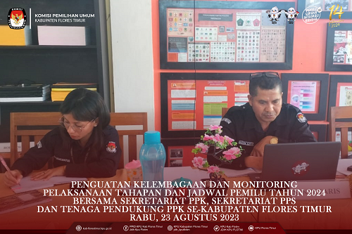 https://kab-florestimur.kpu.go.id/, Larantuka – Komisi Pemilihan Umum (KPU) Kabupaten Flores Timur terima kunjungan dari Badan Pengawas Pemilu (Bawaslu) Kabupaten Flores Timur di kantor KPU Kabupaten Flores Timur, Jl. Jendral Sudirman Kelurahan Weri Kecamatan Larantuka, Selasa (22/08/2023).