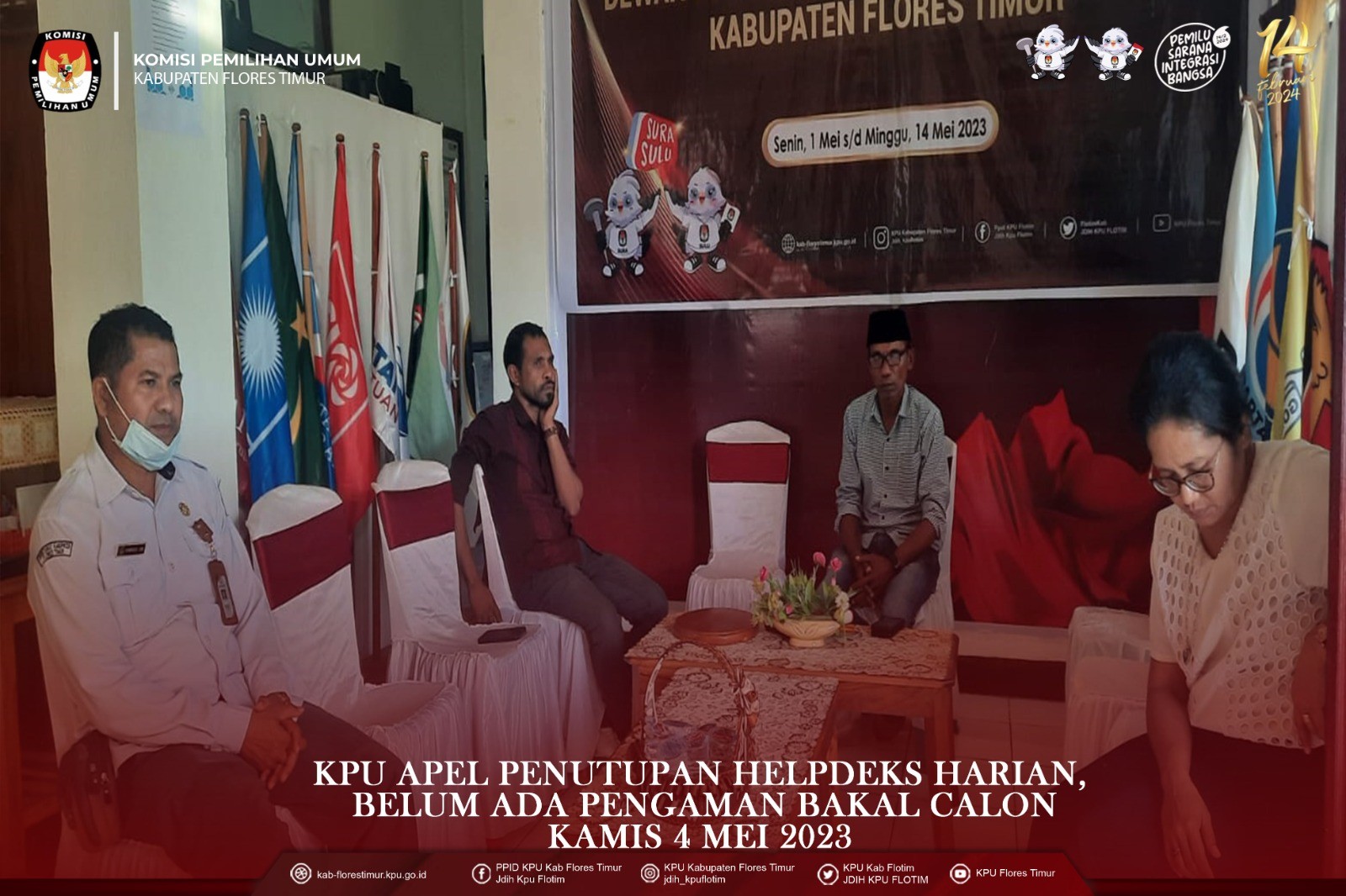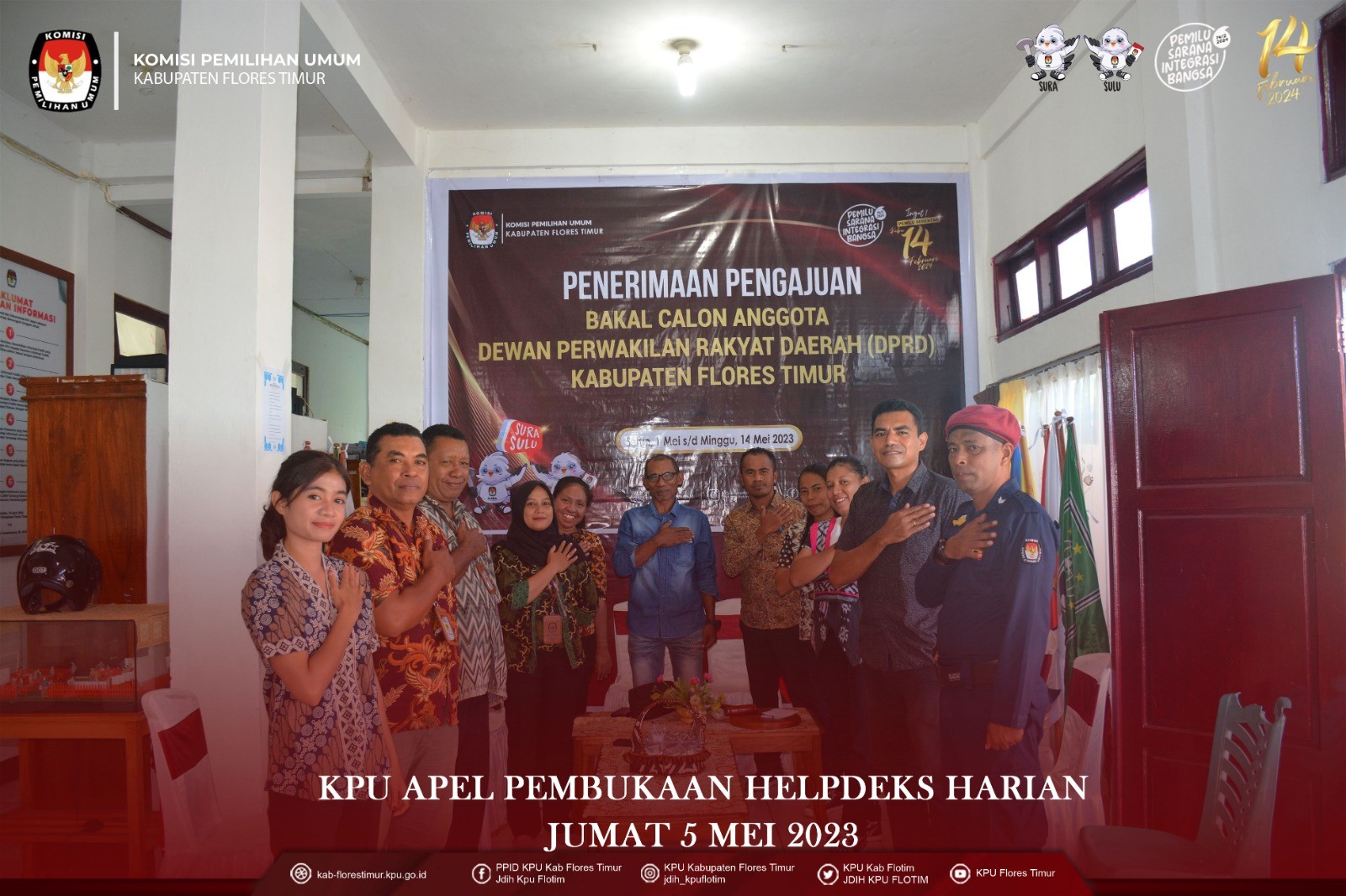 https://kab-florestimur.kpu.go.id/. Larantuka, KPU Kab Flores Timur secara rutin melakukan Apel Pembukaan dan penutupan Pelayanan Helpdesk sebagai bentuk kesiagaan dalam membangun kekompakan tim seluruh elemen KPU Flores Timur dalam menjalankan tugas pelayanan melalui masa tahapan pemilu khusunya tahapan yang sedang dijalankan yakni Pencalonan DPR,DPRD Provinsi, dan DPRD Kabupaten/kota. Kornelius memberikan arahan terkait persiapan pelayanan Helpdesk untuk selalu siaga melayani setiap partai politik yang mendaftarkan bakal calon Anggota DPRD ke KPU. Oleh karena itu semua tim dan personil diharapkan selalu “stand bye” menjaga kemungkinan-kemungkinan tersebut. Kornelius juga mengemukanan terkait SOP Pelayanan Helpdesk perlu memperhatikan juga 3S (Senyum, Sapa dan Salam) sehingga tamu yang datang merasa nyaman dan damai saat berkunjung ke rumah pemilu, tutur kornelius. Kegiatan ini dilakukan secara rutin sejak tanggal 1 Mei dan akan berlangsung sampai dengan tanggal 14 Mei mendatang. Tempat pelaksanan apel yakni Pendopo Kantor KPU Kabupaten Flores Timur. Lebih lanjut, Kornelius menegaskan untuk semua perangkat harus sudah ready terlebih hal-hal teknis yang memang perlu diperhatikan sejak dini dilakukan. Sambil menunggu kedatangan para bakal calaon DPRD yang mendaftar secara internal kita perlu lakukan pedalaman juknis 352 dan PKPU nomor 10 tahun 2023 sebagai fondasi kita saat lakukan penerimaan pendaftaran dan verifikasi dokumen pendaftaran nantinya, jelas Kornel.