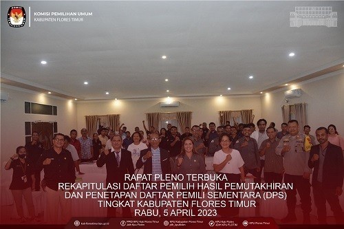 https://kab-florestimur.kpu.go.id/. Larantuka - 3 April 2023 bertempat di aula hotel sunrise kelurahan weri ketua KPU Kabupaten Flores Timur Kornelius Abon membuka kegiatan Rapat Pleno Terbuka Rekapitulasi Daftar Pemilih Hasil Pemutakhiran dan Penetapan Daftar Pemili Sementara (DPS) Tingkat Kabupaten Flores Timur, turut hadir Anggota KPU Gergorius Sule Sanga, Tirza Marselina Claudiana, Fabianus Boli Uran, sekretaris KPU Kondradus Liwu, Stakholder ketua Bawaslu Arifin Atanggae, Dahlia Reda Ola, Karolus Riang Tukan , Pimpinan partai politik se kabupaten Flores timur, polres, camat larantuka, ketua PPk se kabupaten Flores timur bersama anggota PPK yang menangani data pemilih. Dalam kesempatan ini ketua KPU Kornelius Abon dalam sambutannya, memberikan apresiasi terhadap kerja keras 850 pantarlih yang ada di kabupaten Flores timur berkat kerja keras mereka kita dapat dipertemukan dalam kegiatan rapat pleno terbuka terkait Penetapan Daftar pemilih sementara, tuturnya. Adapun jumlah Daftar Pemilih Sementara (DPS) yang dihasilkan yakni dengan jumlah TPS 856 dan jumlah Pemilih Laki-laki sebanyak 101.053 dan jumlah Pemilih Perempuan sebanyak 109.268 dengan total menjadi 210.321 pemilih. Lebih lanjut Demikian pula pastikan lagi konsekuen akan diri kita apakah sudah terdaftar dalam DPT atau belum jika masih ada yang belum terdaftar namun telah memiliki dokumen pendaftaran bisa dilakukan klaim kepada PPS yang beralamatkan di kantor desa/kelurahan tempat tinggal bapak ibu sekalian, Data pindah domisili, data ganda, meninggal, tidak dikenal hal-hal ini merupaka warna yang mewarnai proses penyusunan daftar pemilih. Selama proses dinamika penyusunan daftar pemilih belum diberikan kewenangan terkait permintaan data pemilih, akan ada masa untuk di umumkan secara terbuka.