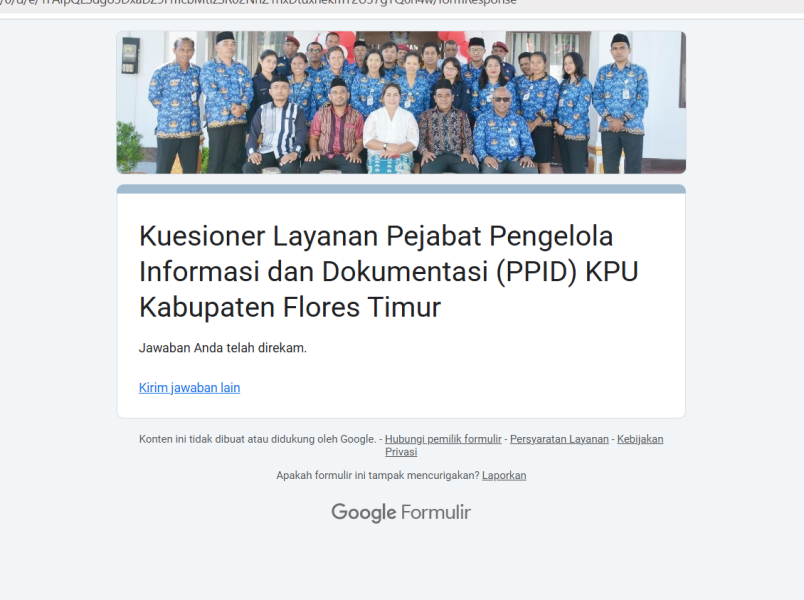 Ijin menyampaikan Link terkait Pengisian Kuisioner Layanan Pejabbat Pengelola informasi dan Dokumentasi (PPID) KPU Kabupaten Flores Timur: